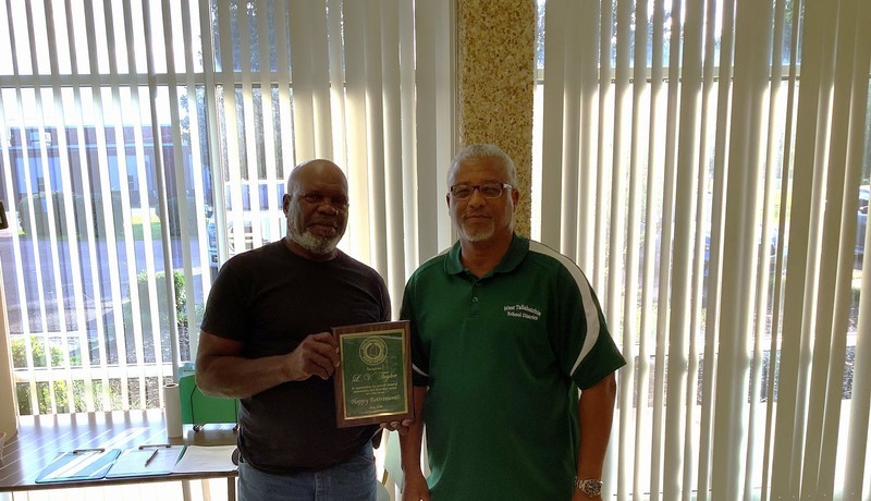 Mr. L. V. Taylor was recently recognized and congratulated on his retirement at the July 11th board meeting by board president, Mr. Marvin George, for his 27 years of outstanding service and dedication as a bus driver for the West Tallahatchie School District.